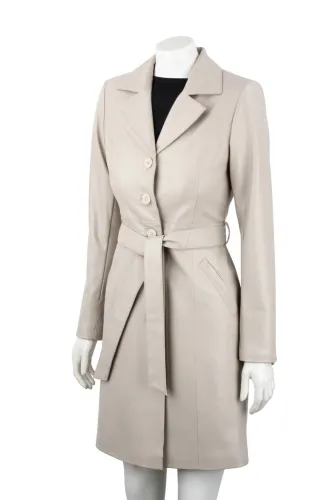 ROZ076 - klasyczny płaszcz skórzany damski w kolorze ecru DORJAN