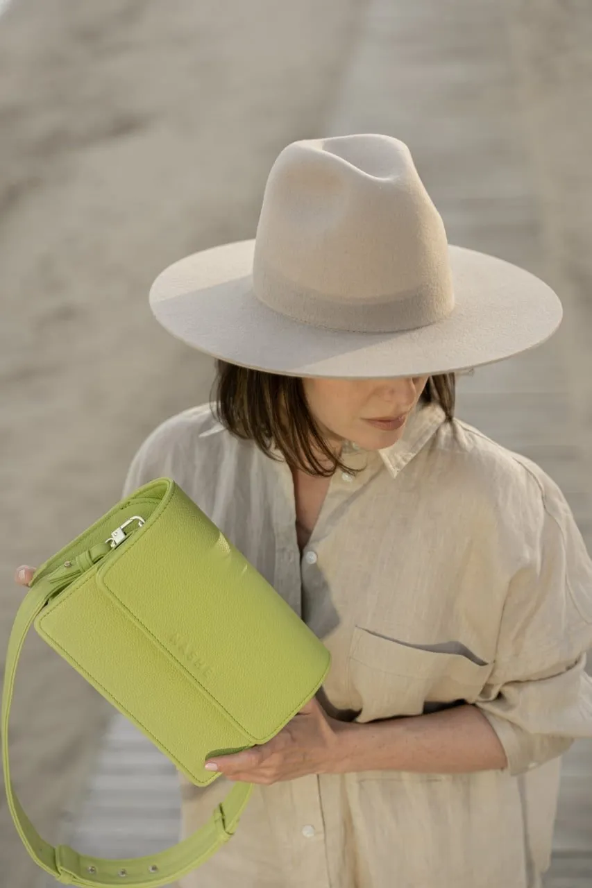 WONDER BAG - skórzana torebka - limonka - groszkowa - złote okucia