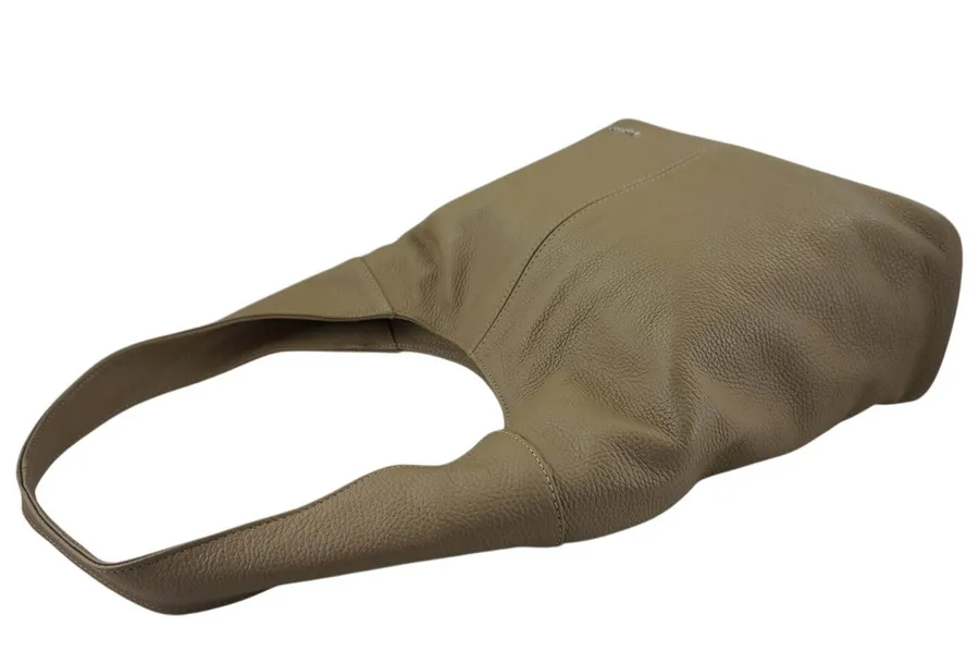 Modna torebka worek na szerokim uchwycie w kolorze ciemnego beżu została wykonana ze skóry licowej. W naszym sklepie znajdziesz szeroki wybór torebek ze skóry naturalnej, które łączą w sobie elegancję oraz wygodę użytkowania, idealnie sprawdzą się na co dzień – mieszczą to co niezbędne do pracy, na zakupy lub krótki weekendowy wyjazd. Proponowana w najnowszej kolekcji modna torebka worek na szerokim uchwycie dostępna jest w kilku wersjach kolorystycznych. Sprawdź naszą ofertę i skorzystaj z rabatu na zakupy zapisując się do newslettera. Otrzymasz rabat 15%, a także informacje o nowej kolekcji, akcjach rabatowych oraz uzupełnieniu stanów magazynowych. Wnętrze torebki: jednokomorowa modna torebka worek na szerokim uchwycie jest wykończona podszewką. Wewnątrz znajduje się duża zasuwana kieszeń doszyta do spodu torebki, mniejsza zasuwana kieszonka mieszcząca portfel lub kosmetyki oraz miejsce na telefon.