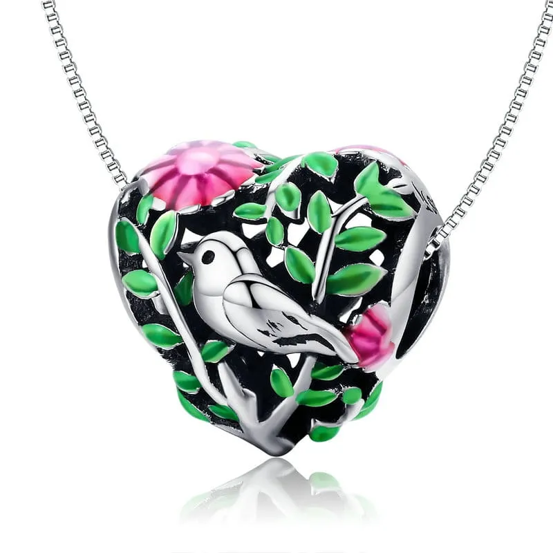 Serce z ptaszkiem srebrny charms koralik beads srebro 925