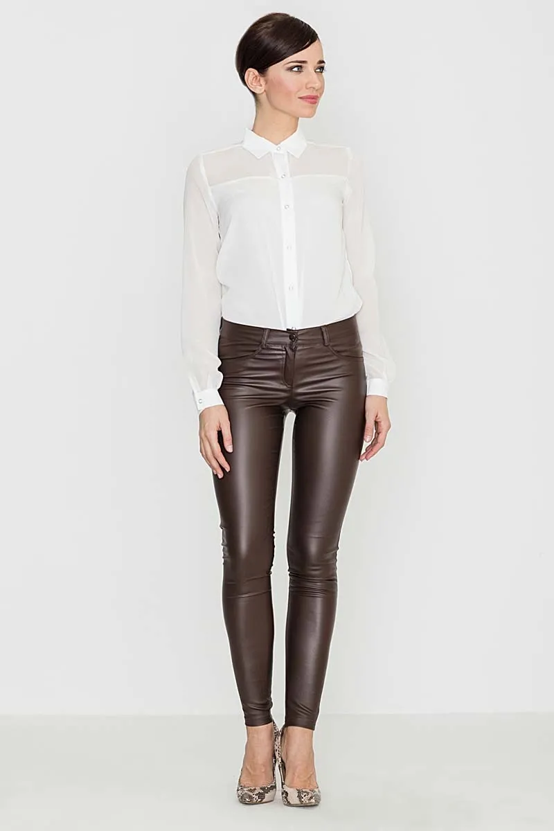 Brązowe Woskowane Spodnie z Prostymi Dopasowanymi Nogawkami