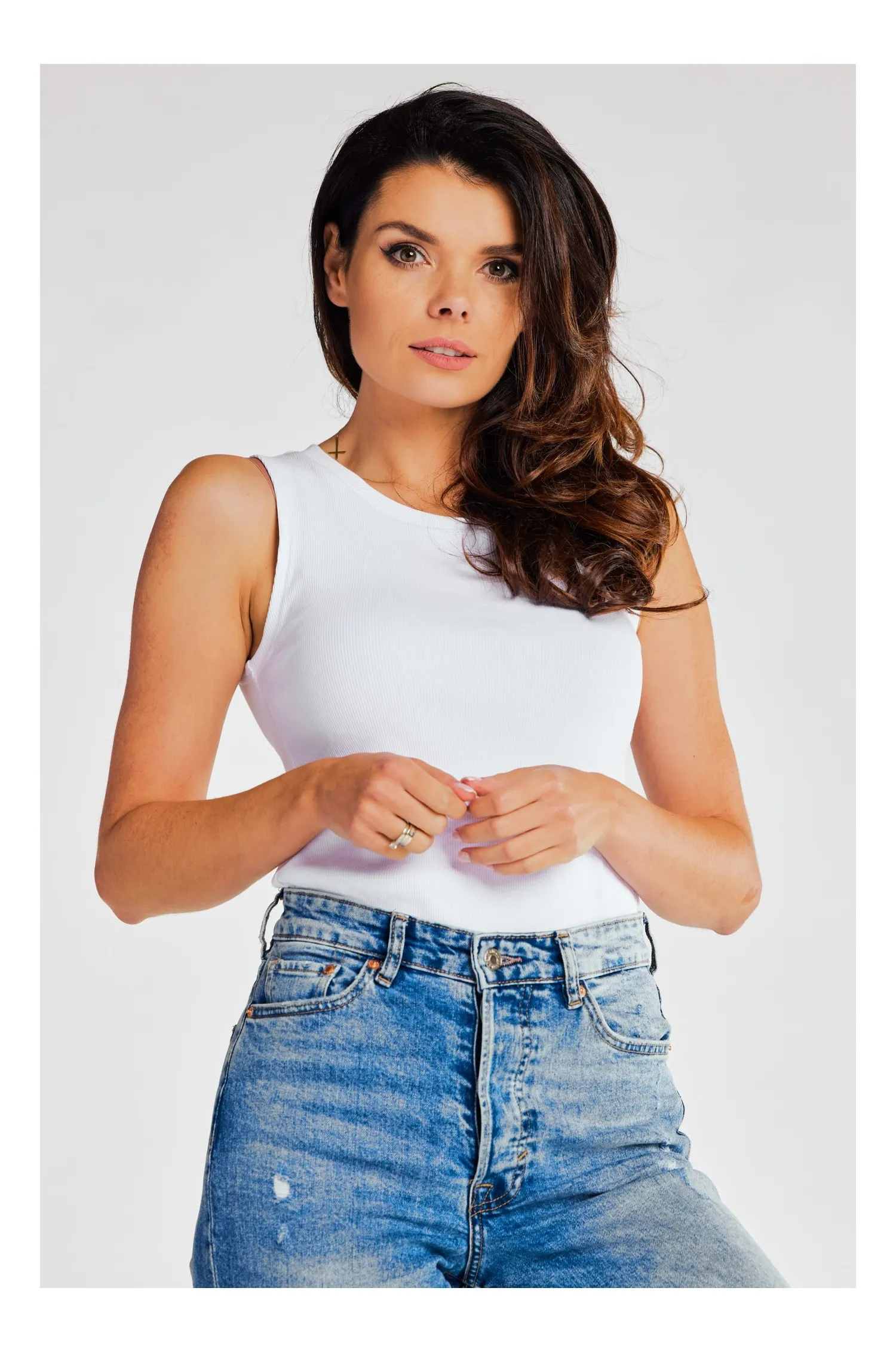 Wygodny top bez rękawów - biały - Rozmiar: S