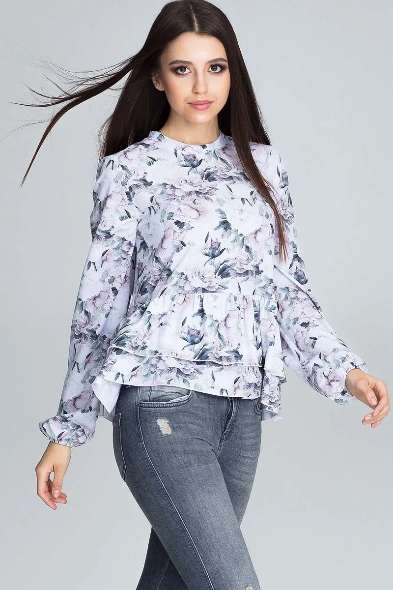 Wzorzysta Bluzka z Podwójną Falbanką – Wzór 73