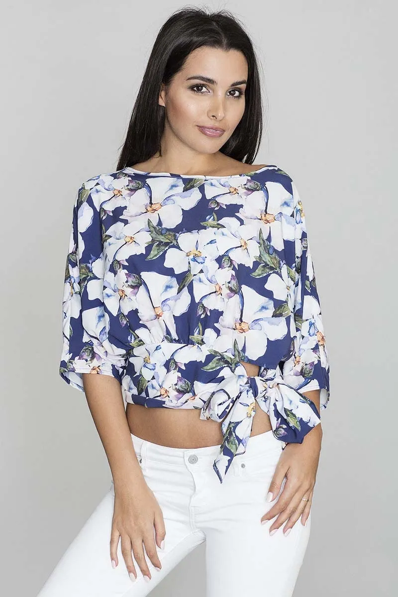 Kwiatowa Krótka Bluzka z Wiązaną Kokardą