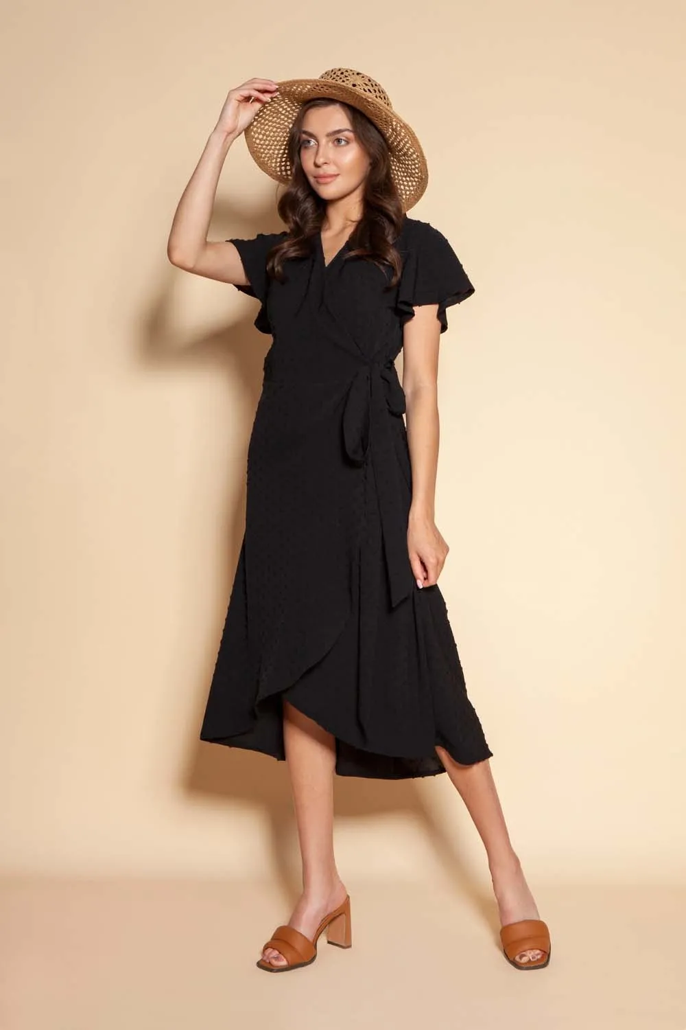 Kopertowa Sukienka z Asymetrycznym Dołem - Czarna