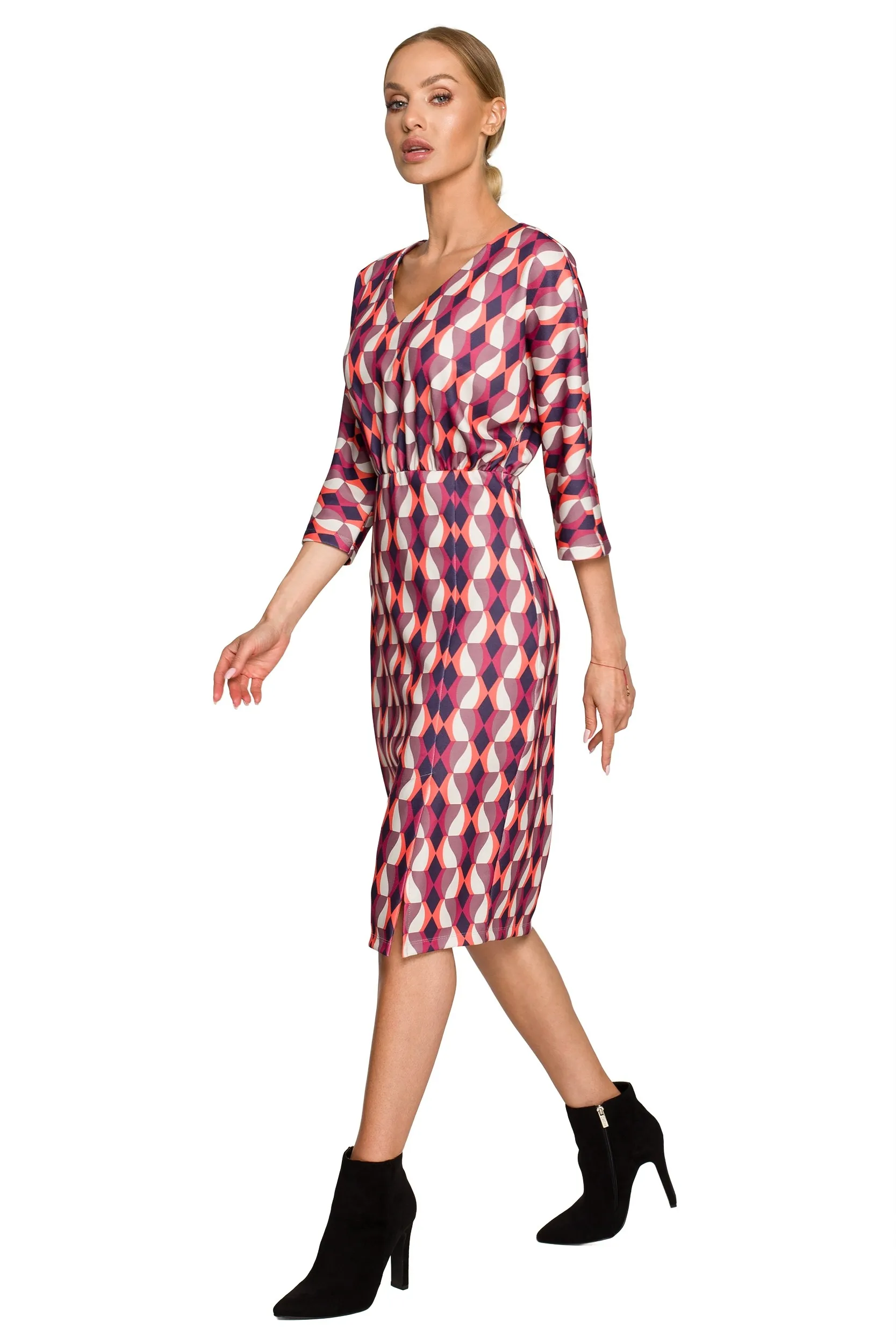 Wzorzysta wizytowa sukienka ołówkowa- wzór 3 - Rozmiar: M