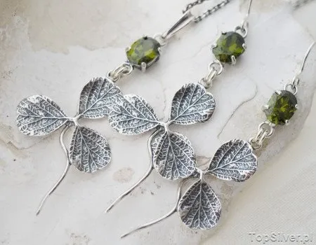 Wytworny, srebrny zestaw biżuterii w składzie: kolczyki, wisiorek oraz pierścionek – stylistyką nawiązujące do najpiękniejszego okresu dla jubilerstwa czyli secesji. W misterny a zarazem delikatny wzór wkomponowano piękne granaty. Biżuteria wykonana została z dbałością o każdy szczegół. Biżuteria z pewnością będzie przykuwać uwagę i sprawi, iż każdy poczuję się w niej piękniejszy 🙂 Wymiar pojedyńczego motywu zdobniczego: 11x22mm Srebro: 925 W naszej ofercie znajdziesz także te elementy do kupienia osobno. To świetny pomysł na prezent.