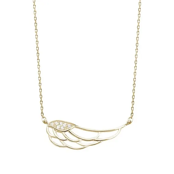 Naszyjnik srebrny pozłacany z cyrkoniami - skrzydło anioła