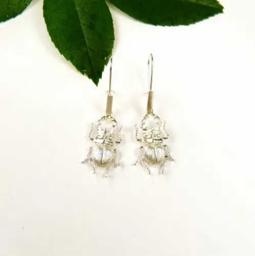 Kolczyki srebrne z Białymi Skarabeuszami