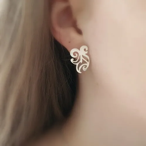 Kolczyki srebrne na sztyftach- Płomyki mini III biale