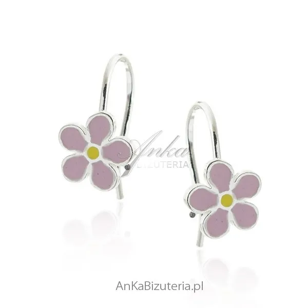 Kolczyki srebrne dziecięce - różowe kwiatki
