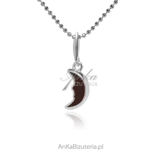 Subtelna zawieszka srebrna uśmiech księżyca z wiśniowym bursztynem