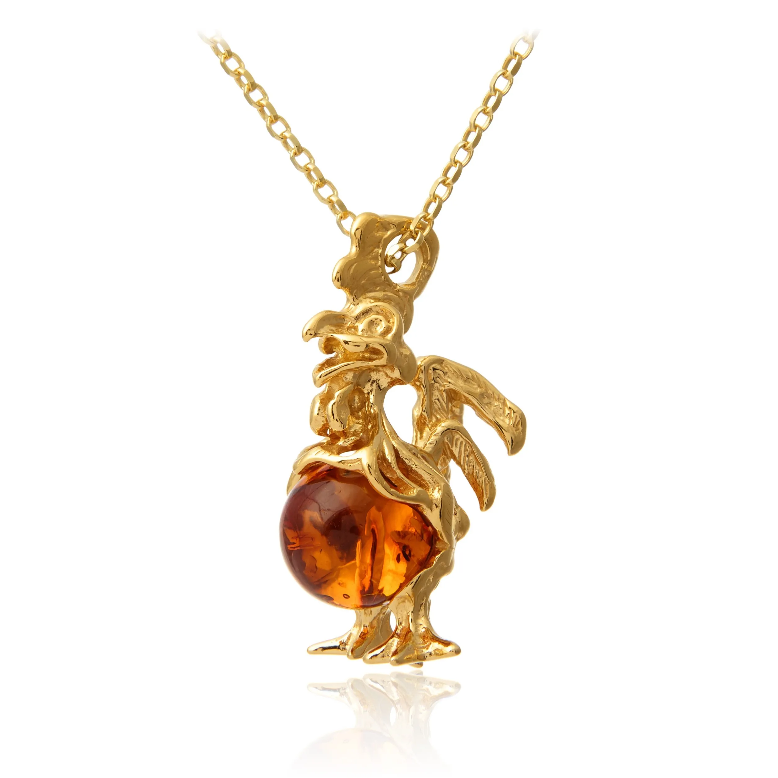 Zawieszka srebrna pozłacana z bursztynem kogut