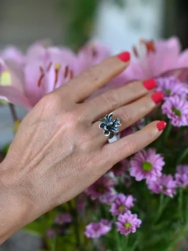 Pierścionek srebrny z kwiatem Szarej Magnolii Małej