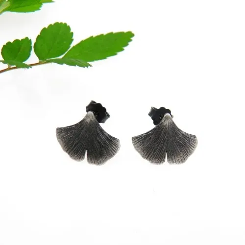 Kolczyki srebrne - Mini miłorzęby szare sztyft