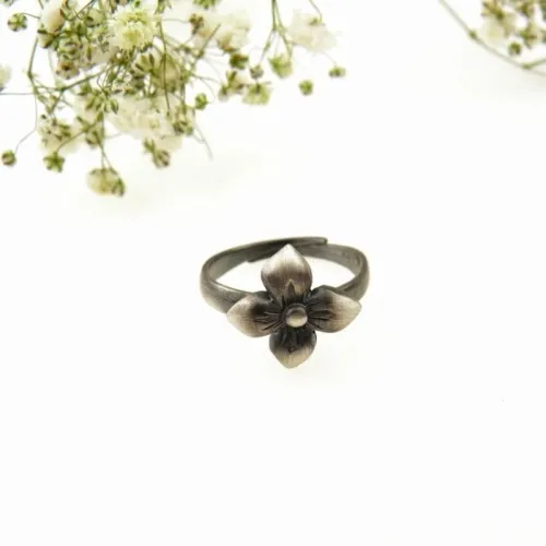 Pierścionek srebrny oksydowany- Kwiat gotycki