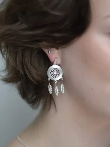 Okazały i niezwykły wisior srebrny w kształcie dużego roztrzepanego pióra. Długość wisiorka 8,3 cm, szerokość 3,1 cm. Zachwyca perfekcyjnym wykonaniem. Stylowy, efektowny i nietuzinkowy. Do wisiorka polecamy kolczyki do kompletu. Waga wisiorka:13,2 gr. Zawieszka sprzedawana bez łańcuszka. Nr katalogowy : P5WB.