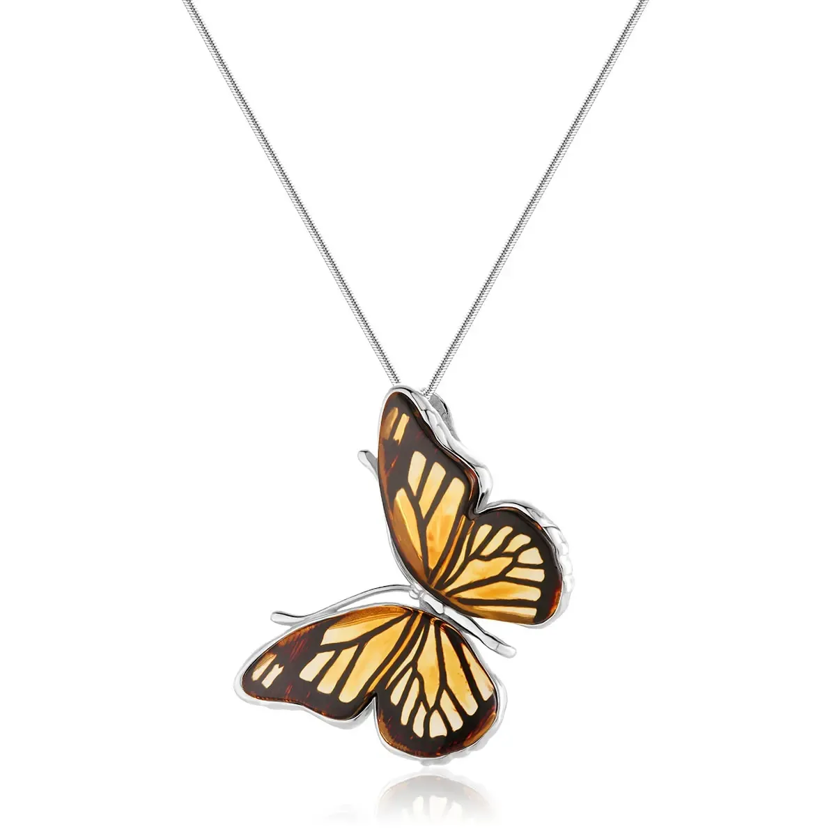 Zawieszka srebrna motyl z bursztynem Butterfly Monarch