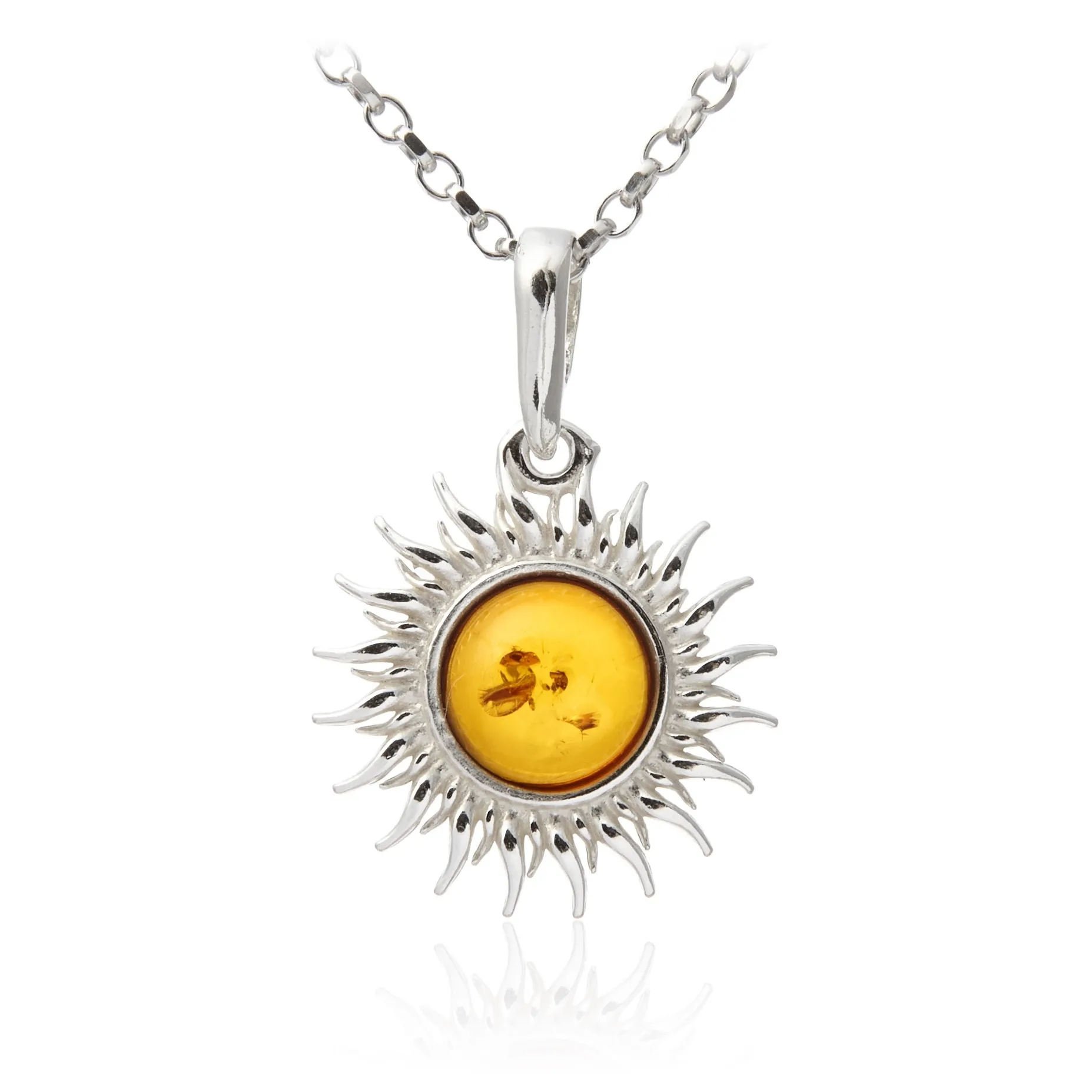 Srebrna zawieszka słoneczko z koniakowym bursztynem
