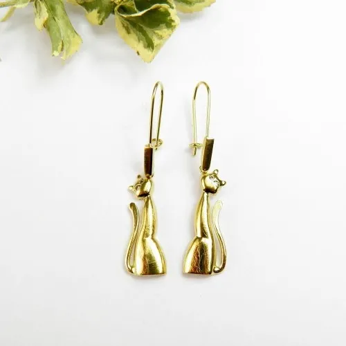 Kolczyki srebrne - Pozłacane koty mini bigiel