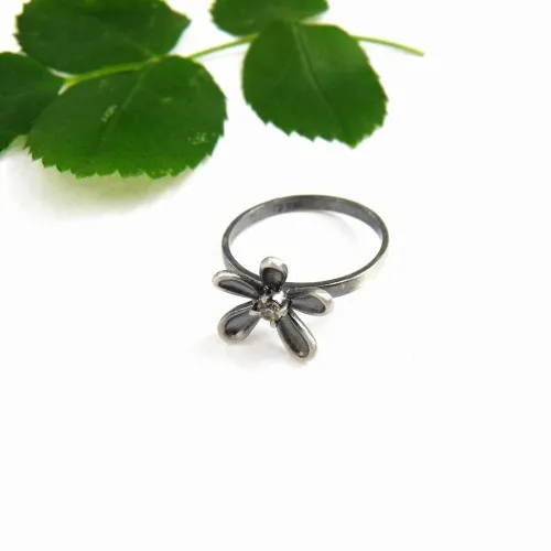 Pierścionek z kwiatuszkiem szarym - Subtell