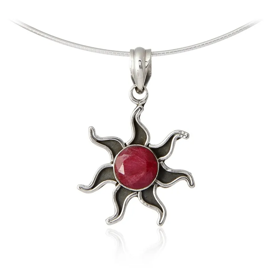 Zawieszka srebrna słoneczko z różowym kwarcem
