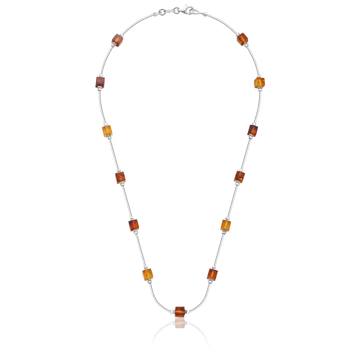 Naszyjnik srebrny kostka z cieniowanym bursztynem