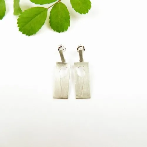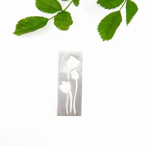 Zawieszka srebrna w kształcie prostokątej blaszki w której wycięty został tulipan. Zawieszka w kolorze białym.Długość 3,2 cm, szerokość 0,9 mm. Waga: 1,6 gr. Do zawieszki polecamy również kolczyki do kompletu. Nr katalogowy :KW54WB