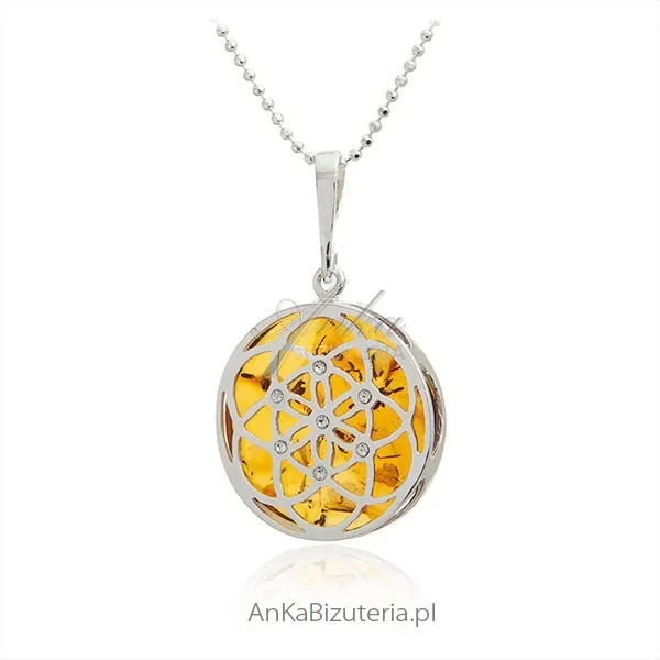Zawieszka srebrna rozetka z bursztynem