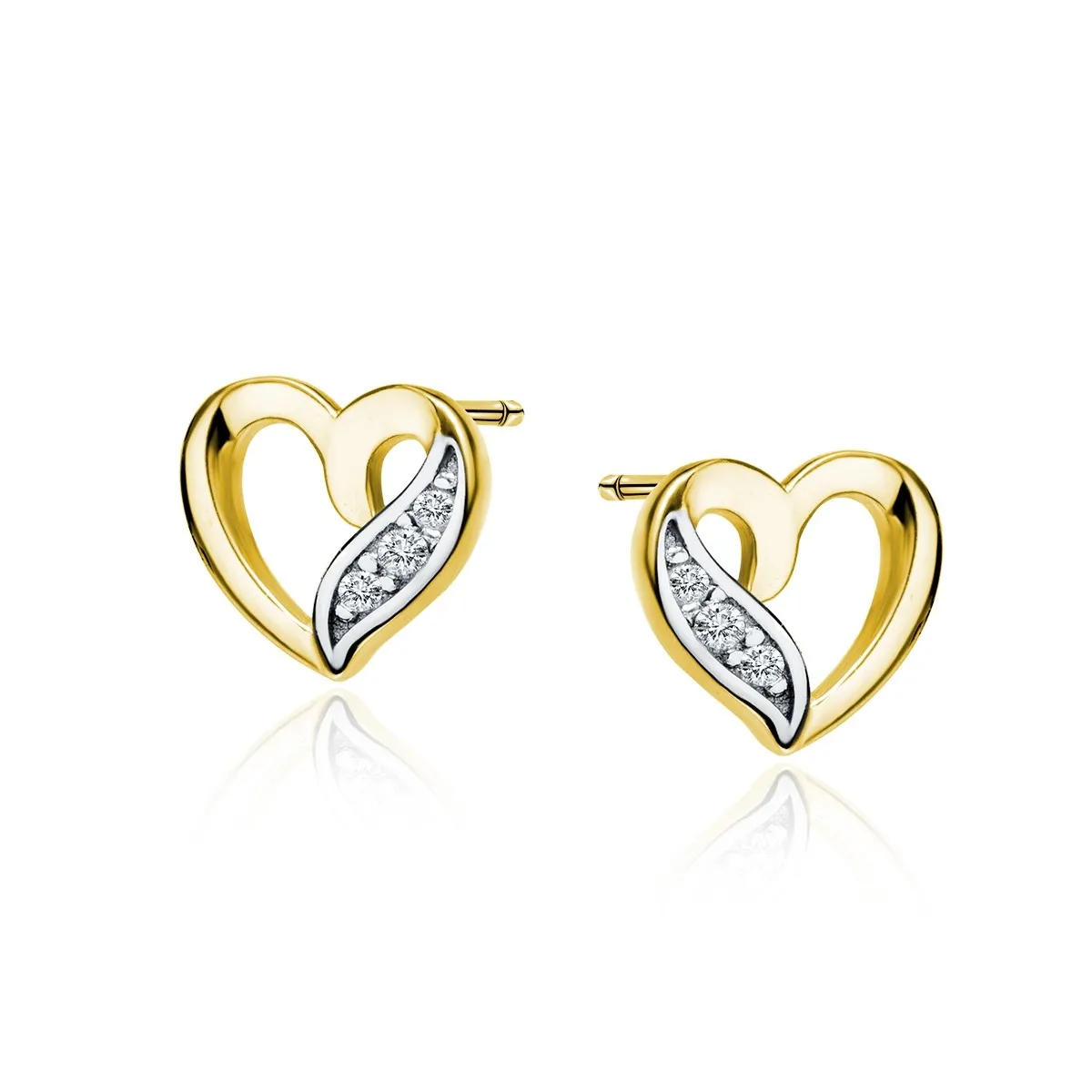 Kolczyki srebrne pozłacane serduszka z cyrkoniami