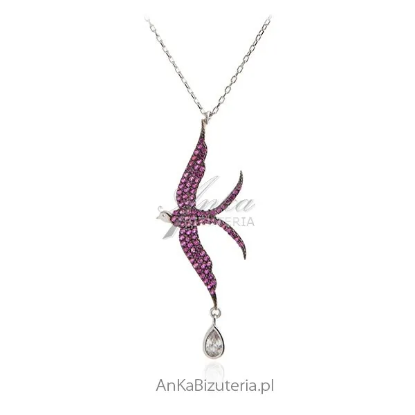 Naszyjnik srebrny jaskółka z pięknymi rubinowymi cyrkoniami
