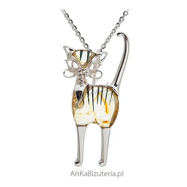 Srebrna biżuteria z bursztynem - duży elegancik kotek