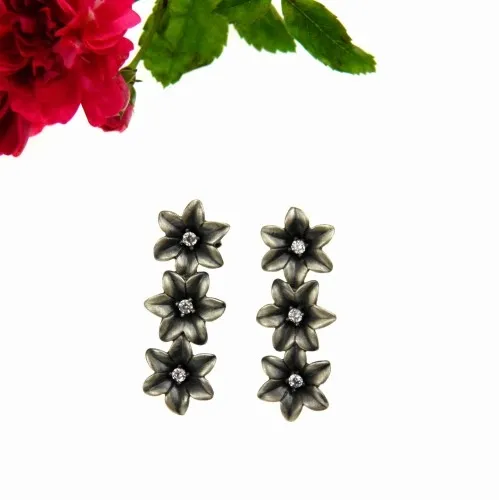 Kolczyki srebrne na sztyftach - Niezapominajki trzy