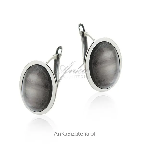 Kolczyki srebrne z szarym uleksytem na biglu angielskim