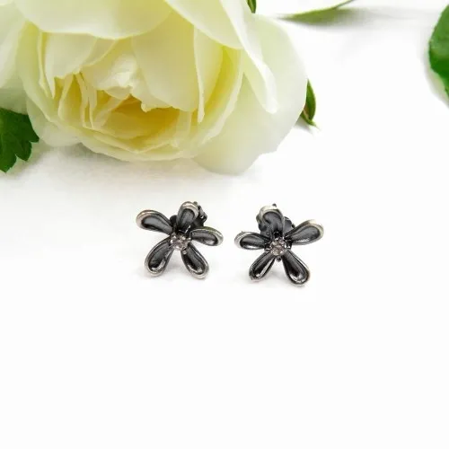 Kolczyki srebrne oksydowane- Subtelne kwiatuszki na sztyftach