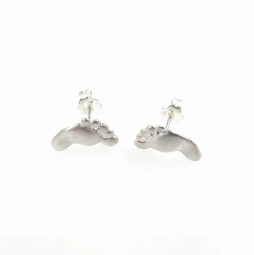 Kolczyki dla młodej mamy ze stópkami dzidziusia - jasne srebro