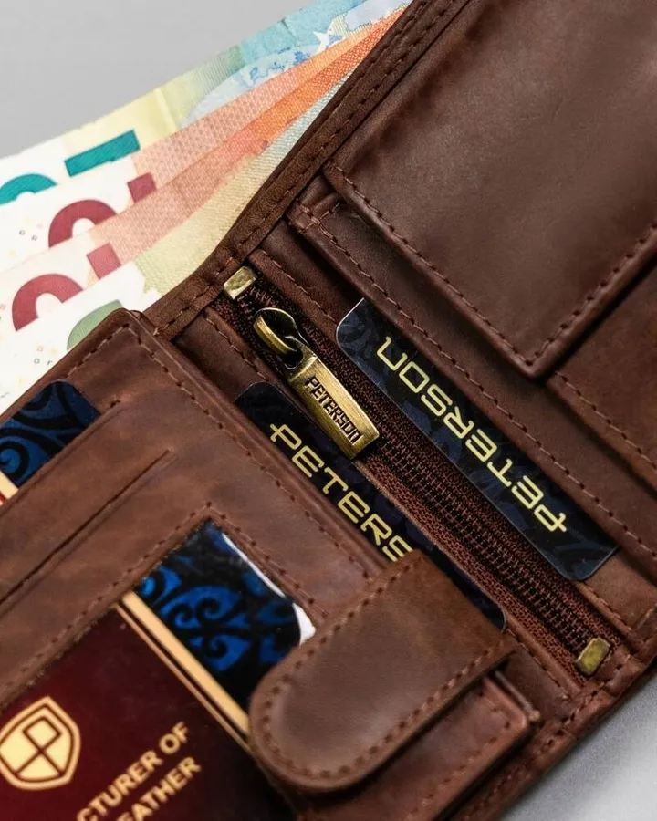 Skórzany portfel tłoczony Peterson PTN N992-BE-MOUN j. brązowy