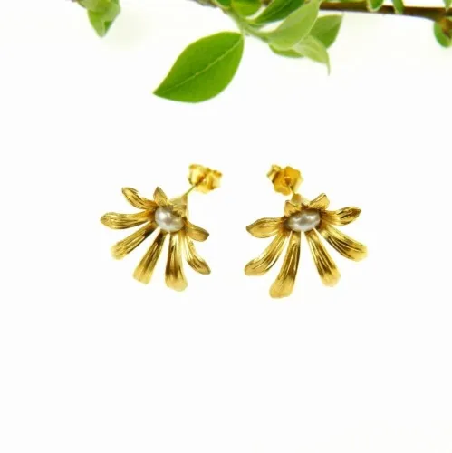 Dzwoneczki złote z perłą - kolczyki srebrne