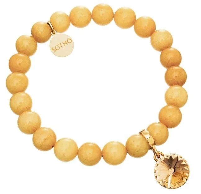 Żółta bransoletka nefryt bursztynowy kryształ Rivoli SWAROVSKI® ELEMENTS