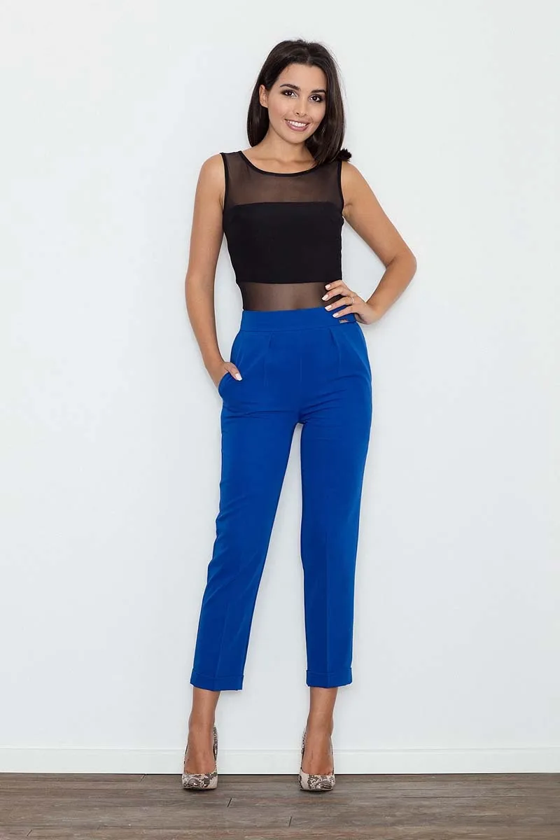 Niebieskie Spodnie 7/8 w Kant z Mankietem