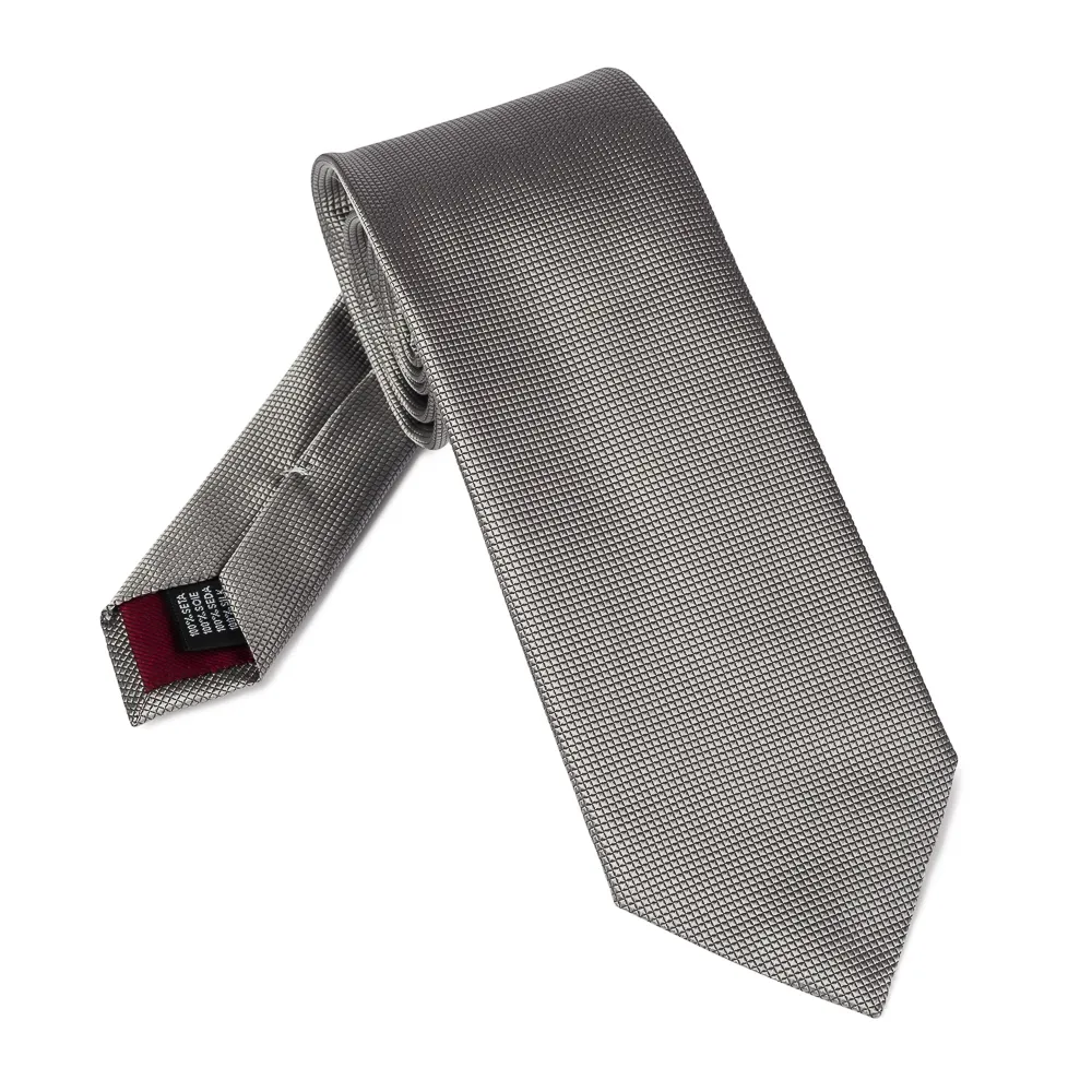 Krawat jedwabny srebrno-szary ze strukturą VAN THORN