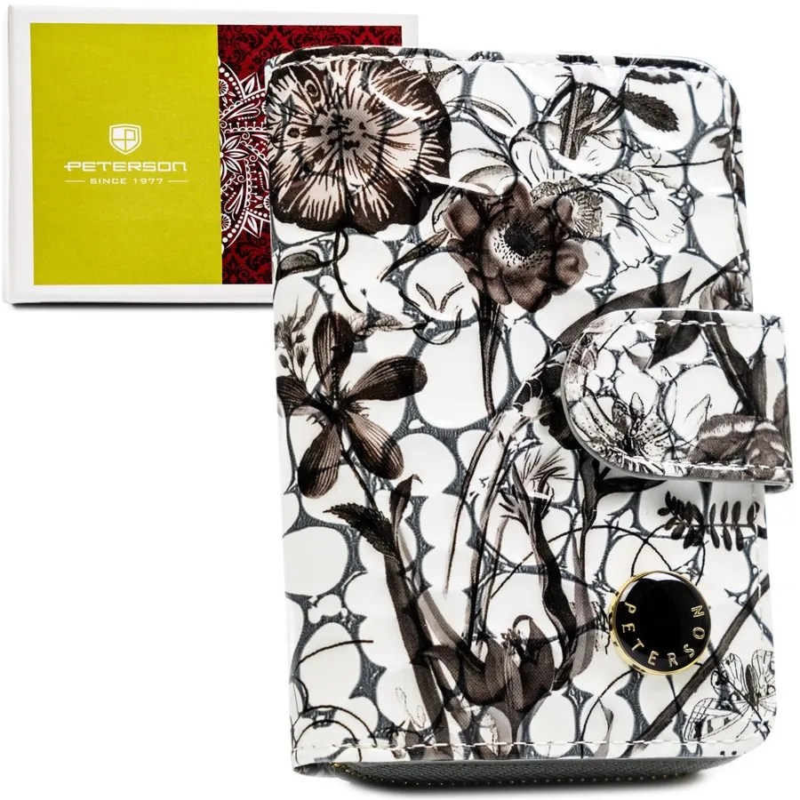Zielony portfel damski ze skóry naturalnej z systemem RFID ozdobiony kwiatowym wzorem PTN PH30-LFL Peterson