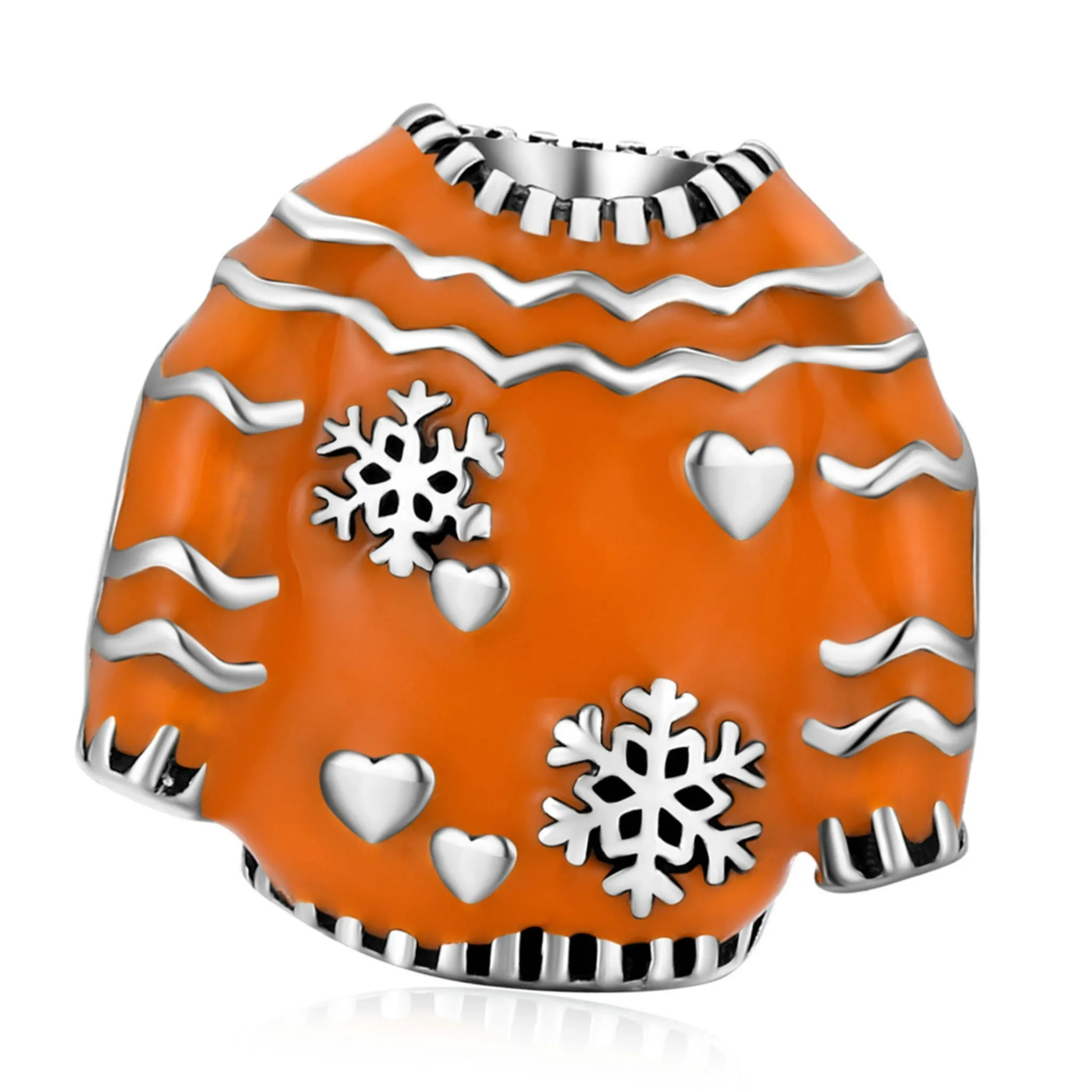 Świąteczny sweterek w śnieżynki srebrny charms koralik beads srebro 925