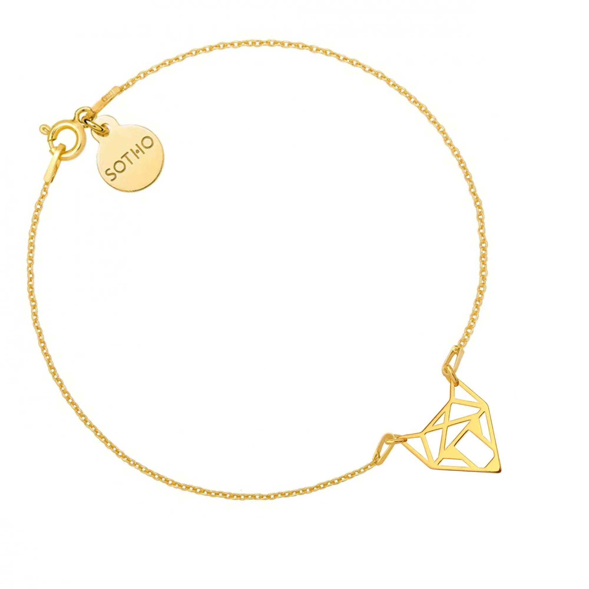 Bransoletka wykonana ze złotego hematytu, przekładki z motylem i zawieszki z logo marki. Wszystkie elementy wykonane ze srebra 925 powlekanego 24 karatowym złotem. Długość 15 cm. Hematyt 4 mm. Motyl 9 x 11 mm. Zawieszka z logo 10 mm.