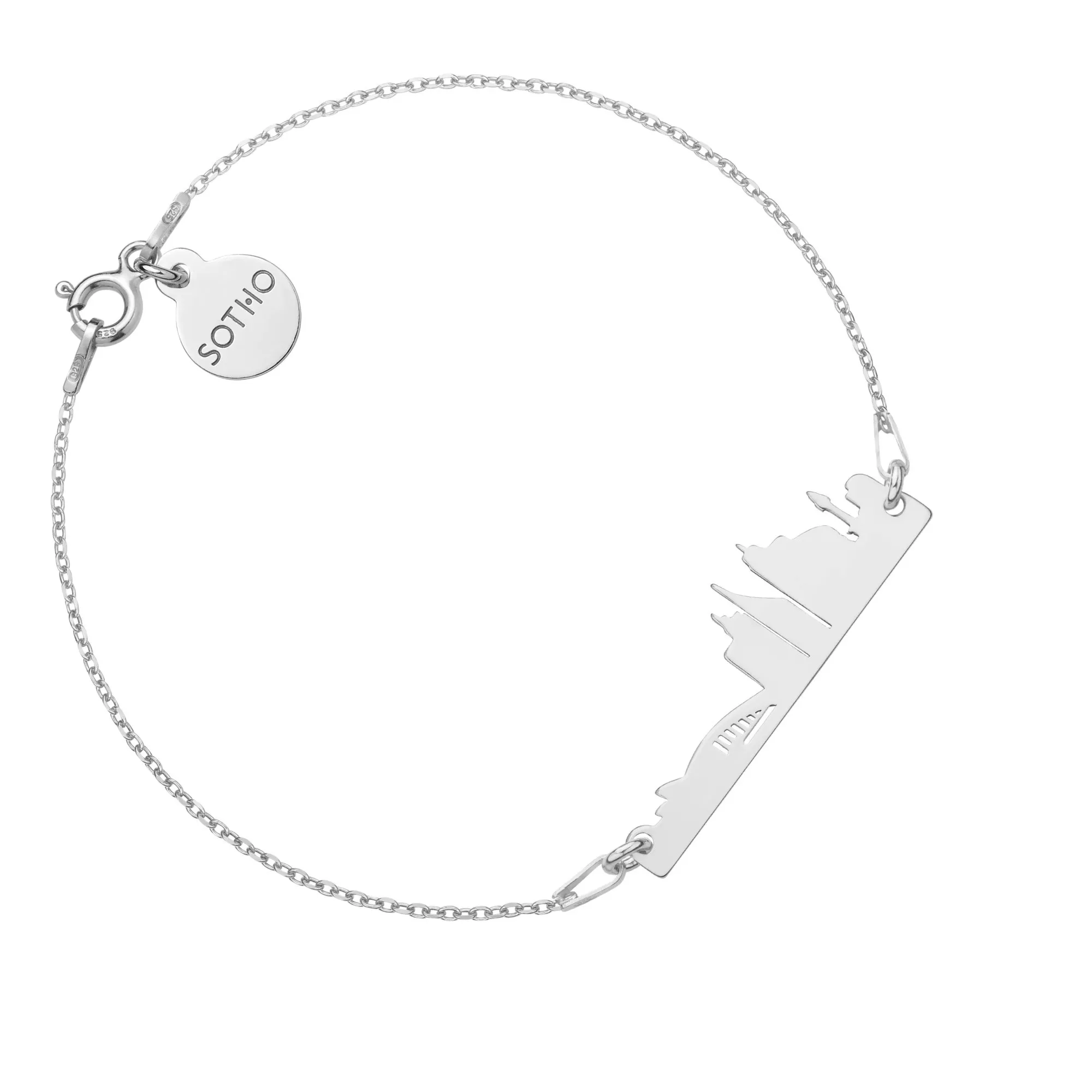 Złota bransoletka łańcuszkowa zdobiona zawieszką w kształcie miasta Mediolan i zawieszką z logo marki. Całość wykonana ze srebra 925 powlekanego 24 karatowym żółtym złotem. Długość ok. 18 cm. Grubość łańcuszka 1 mm. Miasto 31 x 10 mm.. Zawieszka z logo 10 mm. Produkt o wadze poniżej 5 g. Zapakowana w eleganckie pudełeczko z logo marki. Posiada logowaną metkę. Istnieje możliwość zamówienia bransoletki innej długości, z innym modelem zawieszki, z kilkoma zawieszkami, na innym modelu łańcuszka, w wersji ze srebra 925 lub srebra 925 powlekanego 24 karatowym różowym złotem itp.