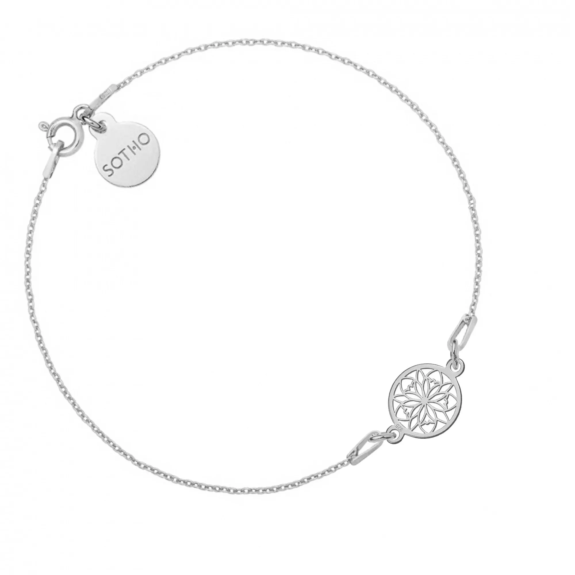 Złota bransoletka łańcuszkowa zdobiona ażurową rozetką i zawieszką z logo marki. Całość wykonana ze srebra 925 powlekanego 24 karatowym żółtym złotem. Długość bransoletki 18 cm. Grubość łańcuszka 1 mm. Rozeta 12 mm. Zawieszka z logo 10 mm. Produkt o wadze poniżej 5 g. Zapakowana w eleganckie pudełeczko z logo marki. Posiada logowaną metkę. Istnieje możliwość zamówienia bransoletki innej długości, z innym modelem zawieszki, z kilkoma zawieszkami, na innym modelu łańcuszka, w wersji ze srebra 925 lub srebra 925 powlekanego 24 karatowym różowym złotem, z dodatkowymi kamieniami, perłami lub kryształami SWAROVSKI® CRYSTAL itp.