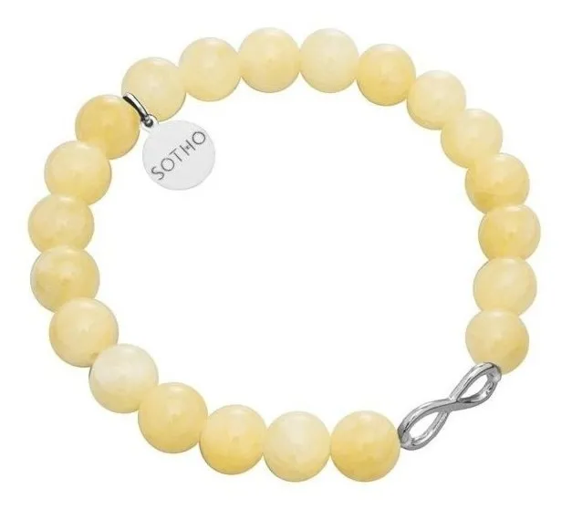 Żółta bransoletka nefryt bursztynowy symbol nieskończoność infinity srebro 925