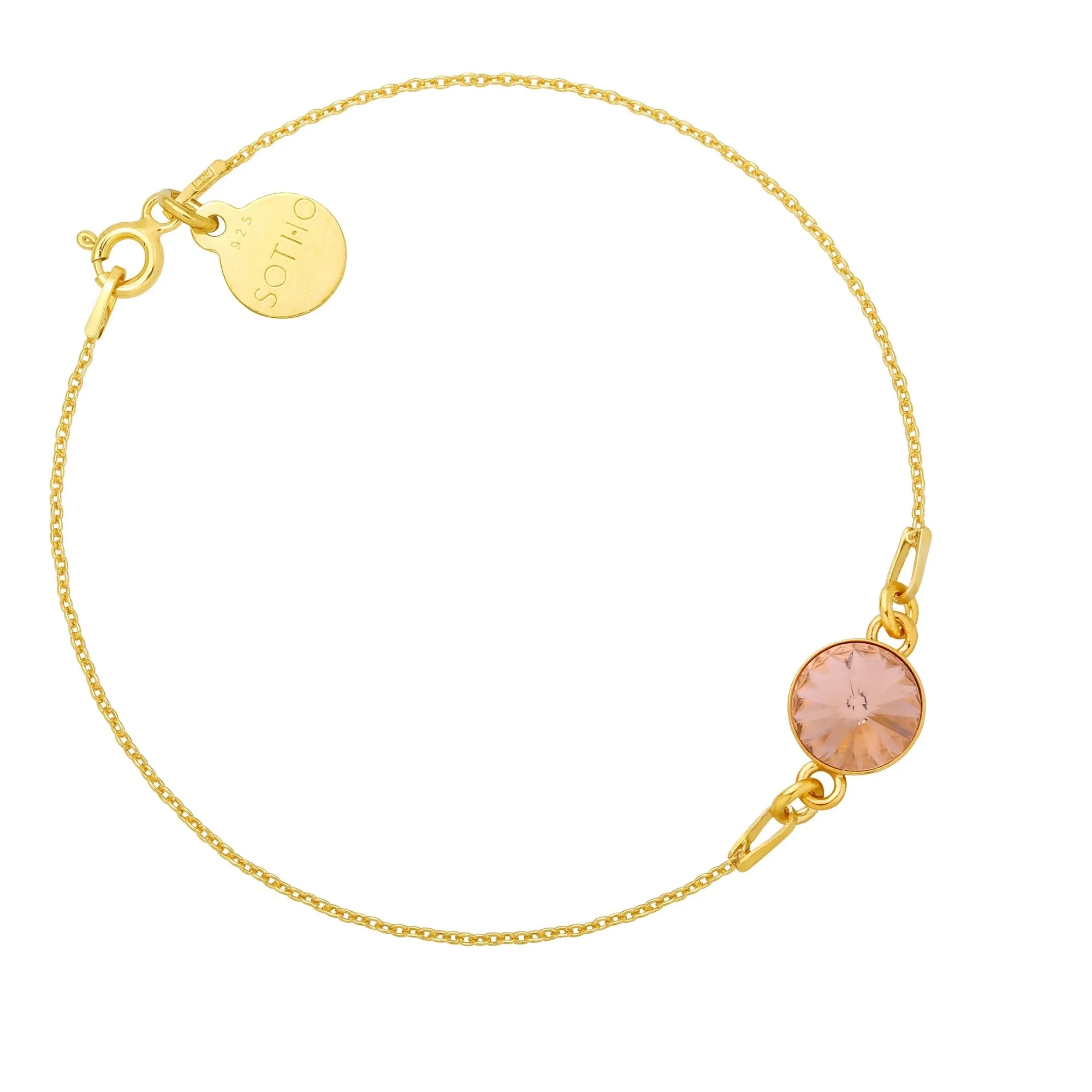 Złota bransoletka z łososiowym pastelowym kryształem SWAROVSKI® CRYSTAL