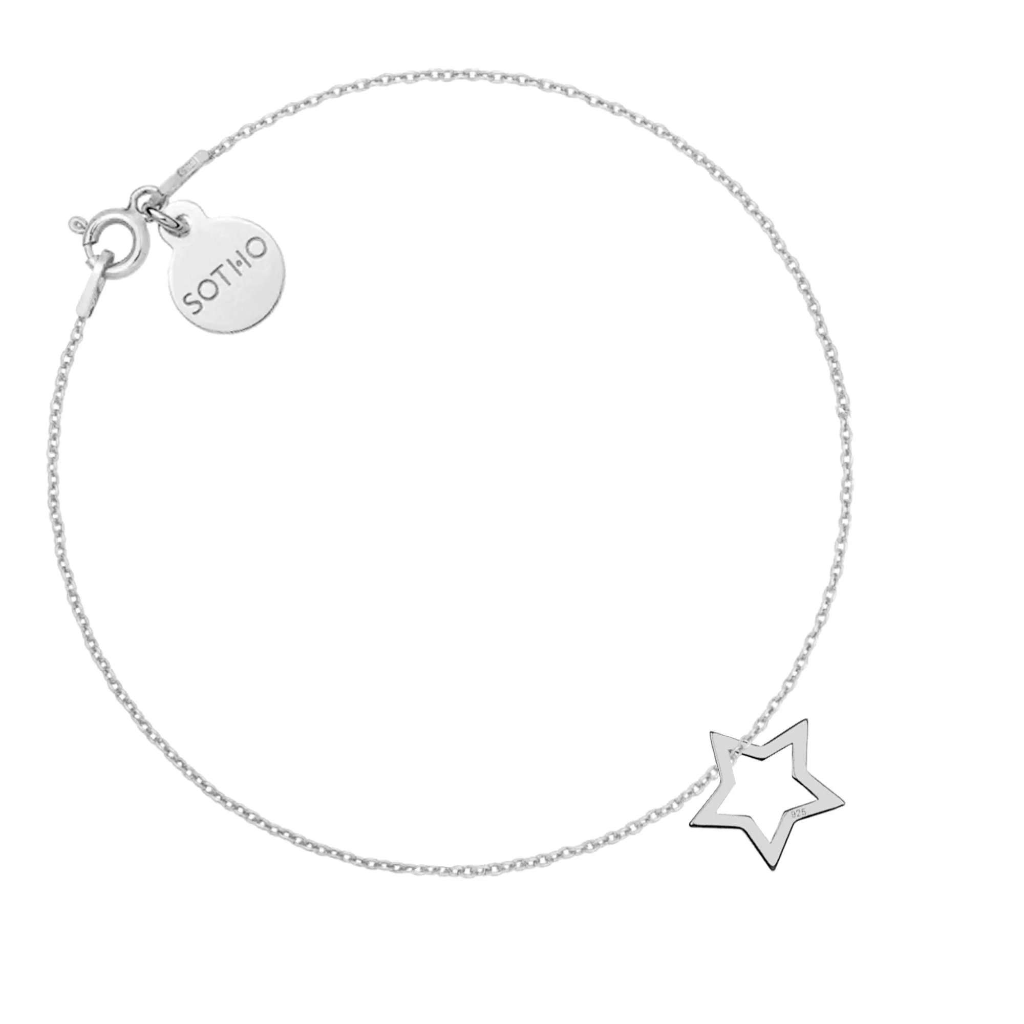 Złota bransoletka łańcuszkowa zdobiona karmą i zawieszką z logo marki. Całość wykonana ze srebra 925 powlekanego 24 karatowym żółtym złotem.