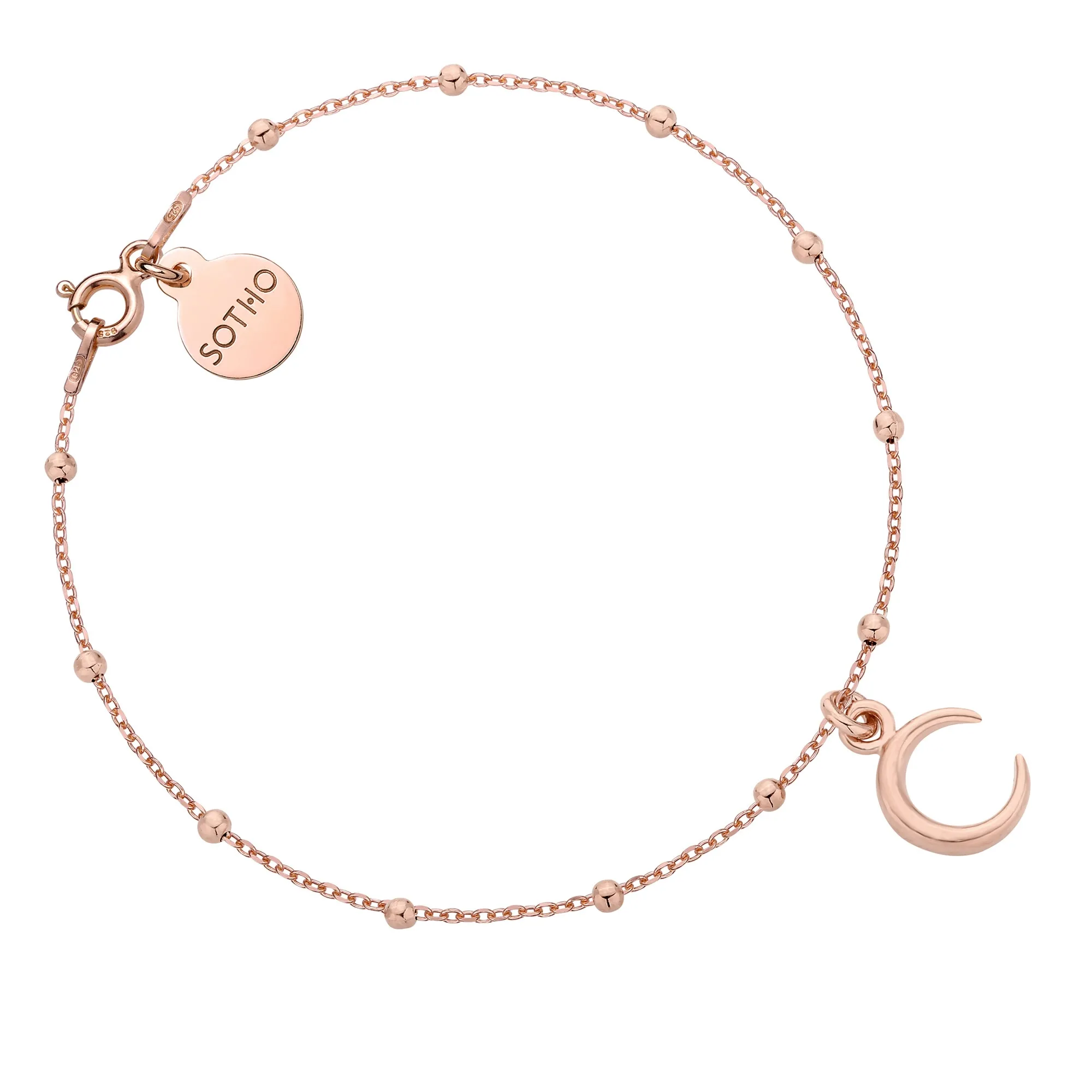 Złota bransoletka kuleczkowa zdobiona księżycem i zawieszką z logo marki. Całość wykonana ze srebra 925 powlekanego 24 karatowym żółtym złotem. Długość 18 cm Grubość łańcuszka 1 mm Kulka 2 mm Księżyc 12,7 x 10,1 mm Zawieszka z logo 10 mm Produkt o wadze poniżej 5 g. Zapakowany w eleganckie pudełeczko z logo marki. Posiada logowaną metkę. Istnieje możliwość zamówienia bransoletki innej długości, z innym modelem zawieszki, z kilkoma zawieszkami, na innym modelu łańcuszka, w wersji ze srebra 925 lub srebra 925 powlekanego 24 karatowym różowym złotem, z dodatkowymi kamieniami, perłami lub kryształami SWAROVSKI® CRYSTAL itp.